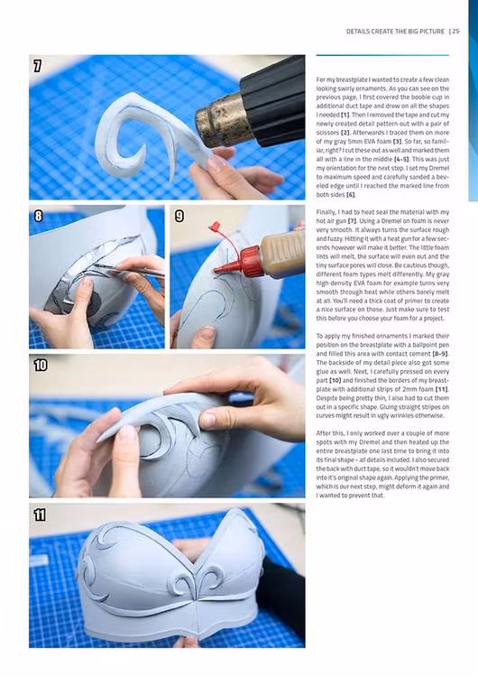 In 48 pages and over 170 pictures you’ll learn every important step from start to finish: creating patterns, cutting, glueing and heat shaping foam, adding details, priming, painting and even attachments. Building your dream cosplay has never been easier! The ultimate foam beginner’s guide!